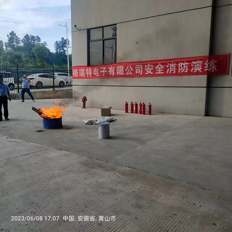 6月8日,安徽格瑞特电子有限公司开展以“消除火灾隐患 筑牢安全屏障”为主題的消防应急演练。